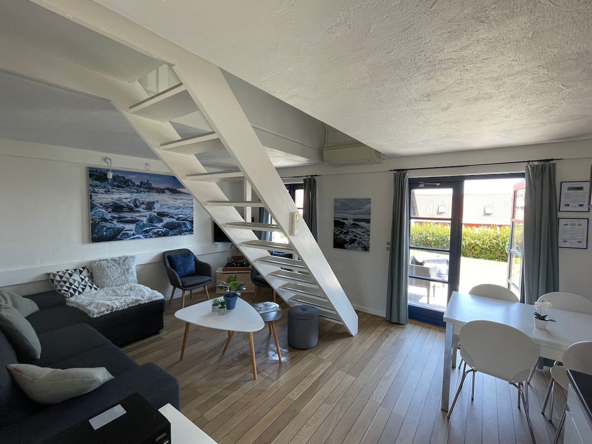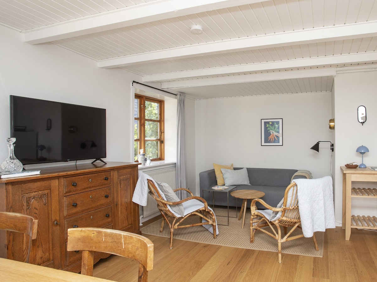 Holiday apartment made in the old farmhouse on a disused farm between Rønne and Hasle. Lovely courtyard that can be closed off so that children can play safely. Several table and bench sets have been set up for free use. You can experience lots of small birds in the garden and occasionally also deer and hares. Lovely large partial wild garden with fruit trees, cherries, apples and pears, which you are welcome to eat. Ca 2 km. to small cozy beach, forest and lakes. I live on the property myself.