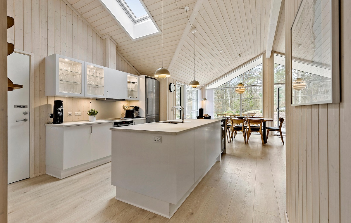 Dejligt træhus med 132 m2 boligareal. Gratis WIFI 50/50 mb. Stor stue kombineret med spisekøkken. Køkken med køl/fryseskab, induktionskomfur, ovn, opvaskemaskine. Der er indendørs sauna og whirlpool(spabadekar). Huset har ladestander til el- og hybridbiler.