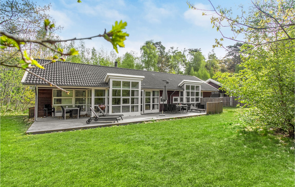 Beautiful cottage near the Dueodde beach. This luxury cottage contains all facilities including a nice bright living room with quality furniture, an open kitchen and dining room as well as three bedrooms and a loft. Finally you will find a lovely bathroom with a nice sauna and spa and forest view. In 2022 a new wooden patio was build and a trampolina set up for the kids Electricity during the stay will be charged at 4 kr per Kwh, while water consumption is included