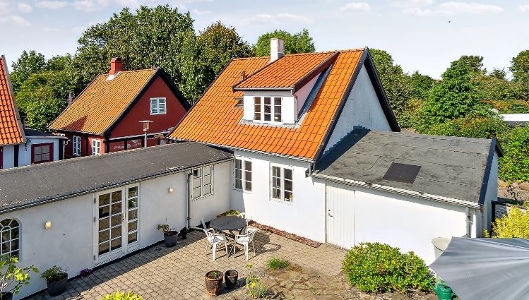There are very few actual summerhouses in Gudhjem. Here is one - unique - both in style and location. The nordic/bohemian vibe is thoroughly implemented throughout the house. Everything from the bedroom with the pitoresque view upstairs to the kitchen/ livingroom area with the fireplace and the french door leading to the romantic small courtyard devided into tiny patios in different levels, to the lounge area with gasgrill amongst clematis on the surrounding stone fence, just screams hygge !