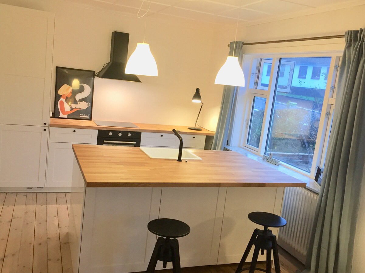 Newly renovated townhouse centrally located in the cozy Sandvig with 100 m to the sandy beach and with Bornholm's beautiful natural neighbor. The house has been renovated from A-Z in 2015 and has a lovely secluded patio with garden tables, hammock and gas grill