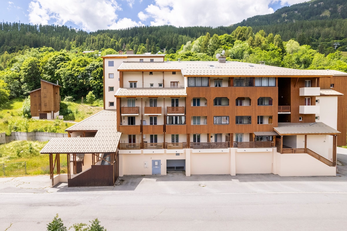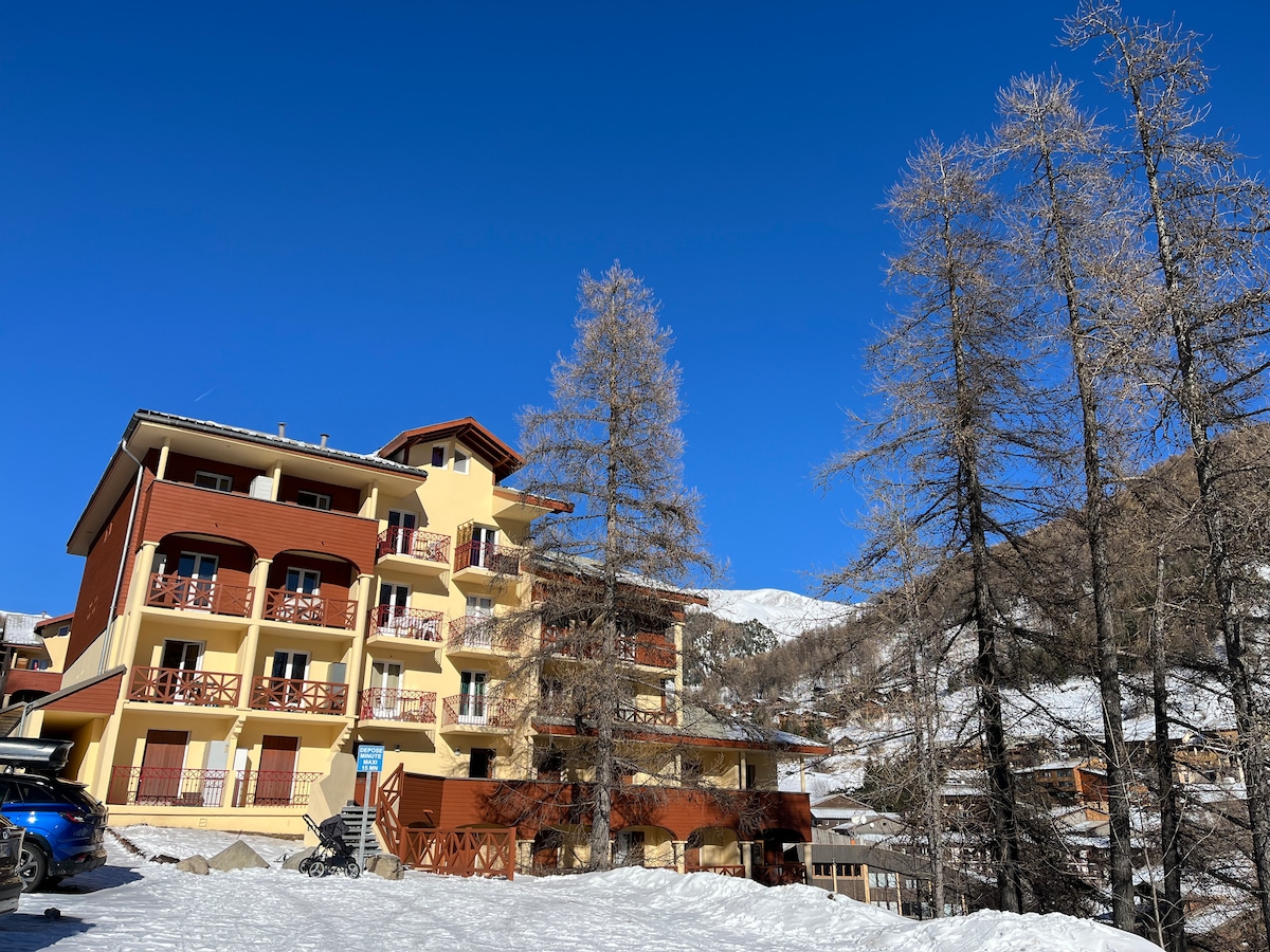 Appartement F2 34m2 au pied des pistes et des sentiers de randonnées, pour 6 personnes max. Situé quartier la Sestrière, vous bénéficiez d'une vue sur les montagnes et d'une belle exposition. Au pied des pistes, proche des loueurs, de la luge d'été et des commerces. En hiver, une navette gratuite s'arrête au pied de la résidence. Appartement tout confort, vous bénéficierez d'un accès à la piscine chauffée, sauna, hammam ouverts durant les saisons d’hiver et d’été. Casier à ski. Terrasse.
