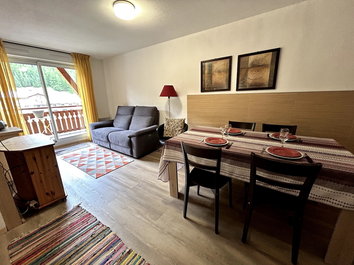 Location 2 pièces mezzanine 5 couchages pour semaine, weekend, ponts de mai ou novembre, vacances scolaires été/ hiver et hors saison. Tout le séjour peut se faire à pieds car tout est à proximité et des navettes gratuites de bus avec un arrêt en face sont prévues en saison. Parkings gratuits. Nombreuses randonnées raquettes, pédestres ou VTT disponibles. L'appartement est situé à côté de la ludothèque, qui permettra de vous éclater en famille ou amis avec les nombreux jeux qu'elle dispose.