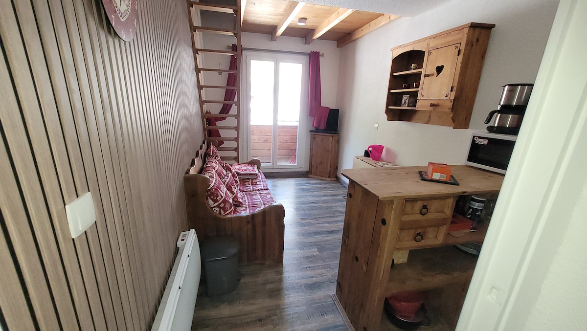 Location 2 pièces mezzanine 5 couchages pour semaine, weekend, ponts de mai ou novembre, vacances scolaires été/ hiver et hors saison. Tout le séjour peut se faire à pieds car tout est à proximité et des navettes gratuites de bus avec un arrêt en face sont prévues en saison. Parkings gratuits. Nombreuses randonnées raquettes, pédestres ou VTT disponibles. L'appartement est situé à côté de la ludothèque, qui permettra de vous éclater en famille ou amis avec les nombreux jeux qu'elle dispose.