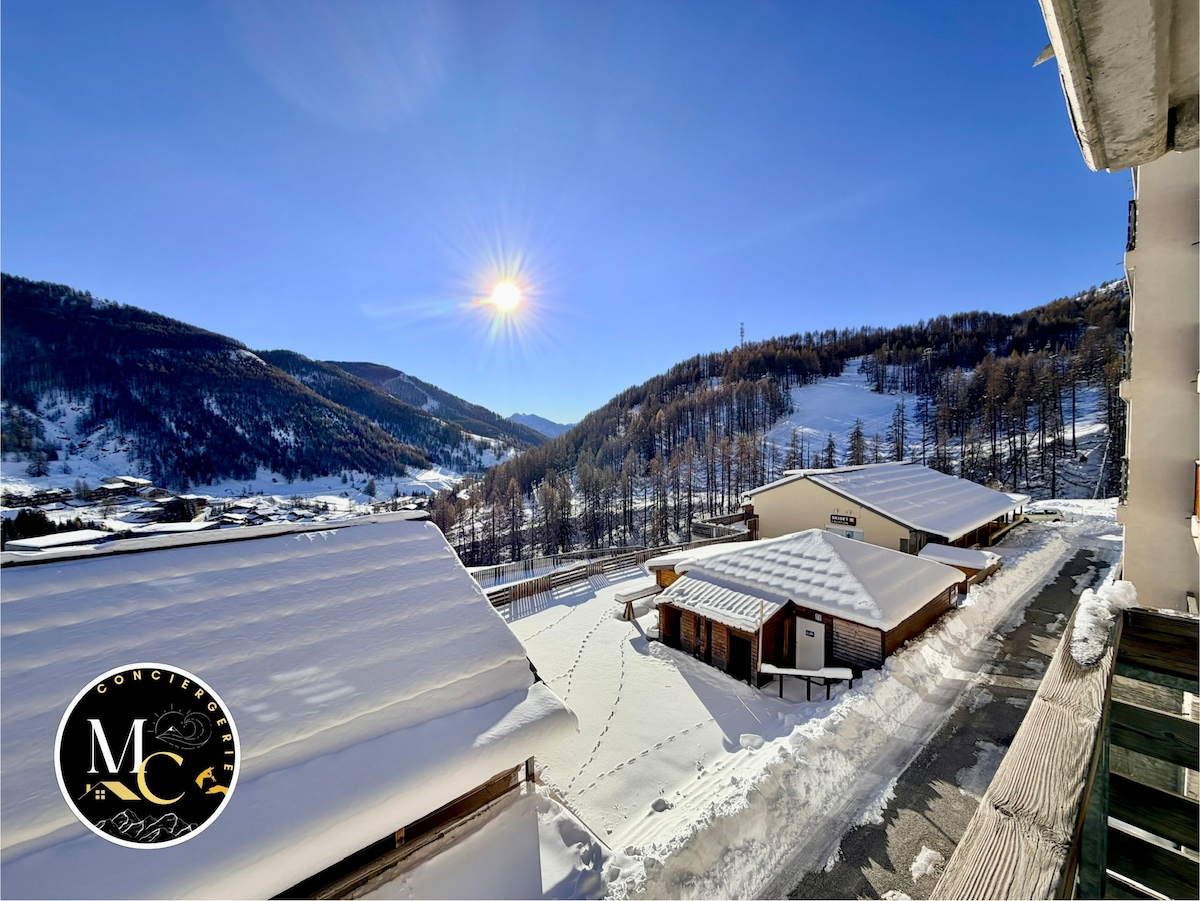 Notre appartement de 34 m2 se compose de 6 couchages comprenant 1 chambre , 1 coin montagne et un canapé gigogne. Vous pourrez profiter sur la terrasse, de sa vue sur la montagne sans vis à vis. Situé dans une Résidence à 100 mètres de la liaison Pra-Loup. La Résidence est dotée d'une piscine intérieur avec sauna, hammam, espace détente et de nombreuses autres prestations. Lors de votre séjour nul besoin de prendre votre linge de lit et de toilette ils seront à votre disposition.