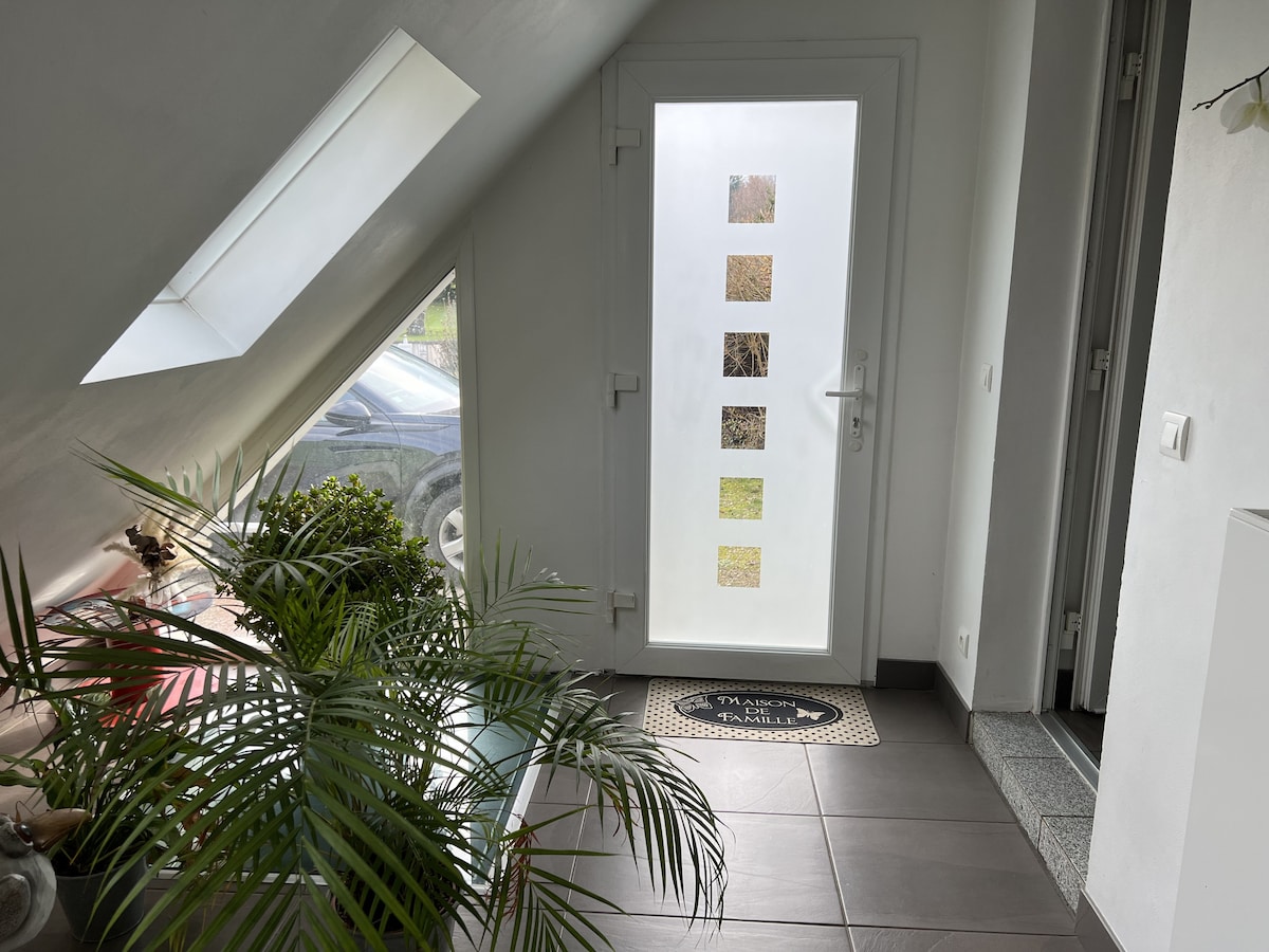 A la recherche d'un logement pour votre séjour professionnel, une étape ou un séjour en famille ? Vous disposerez d'une maison entière avec 2 vrais chambres à coucher équipées respectivement de 1 lit double et 2 lits simple. Lits et matelas de qualité. Vous vous sentirez ici comme "à la maison", au calme. Reposez-vous...! Maison ossature bois récente de 80 m2, avec terrasse et un petit jardin entièrement réservé à l'usage de mes locataires.