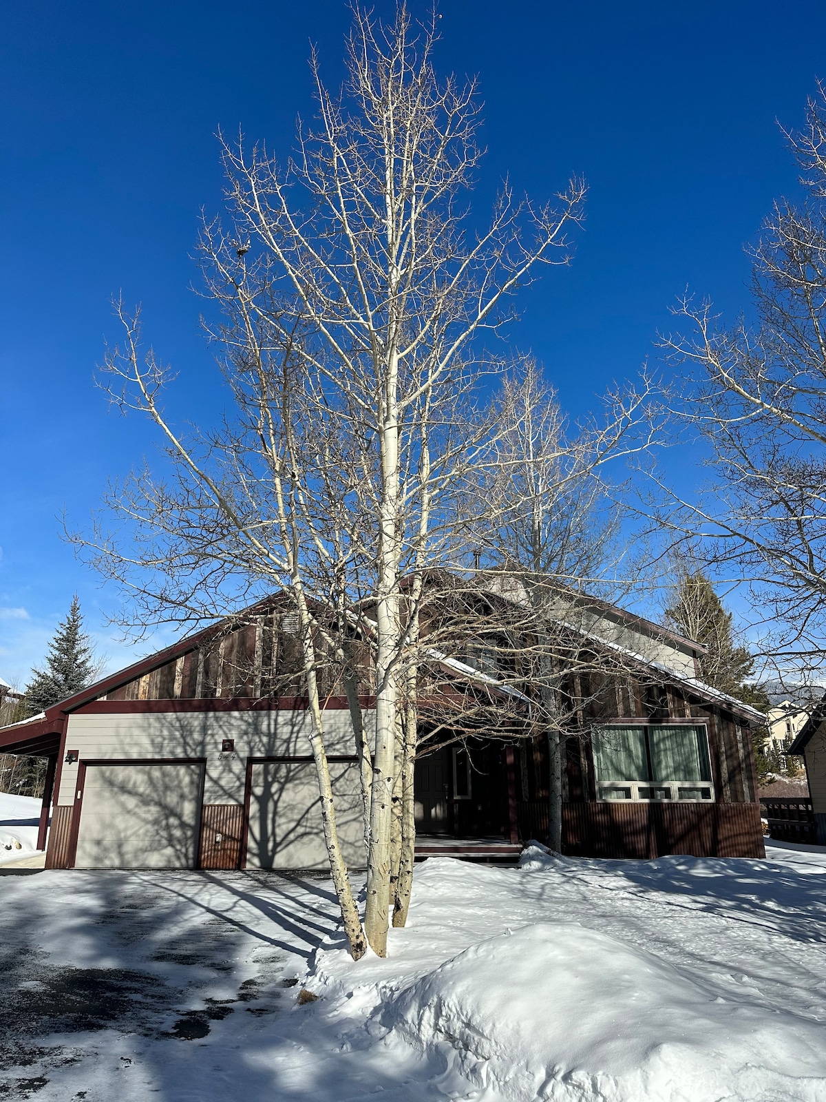 The Lodgepole Overlook Carriage House is located in the Peak 7 neighborhood. It offers a forested and private escape from the hustle and bustle of the ski area and downtown Breckenridge. This private home is located on the north side of Breckenridge and eliminates the delays and frustration of getting in and out of town... especially when going to other nearby ski areas or parts of the county. The VERY PRIVATE hot tub is nestled against the White River National Forest which borders the property.