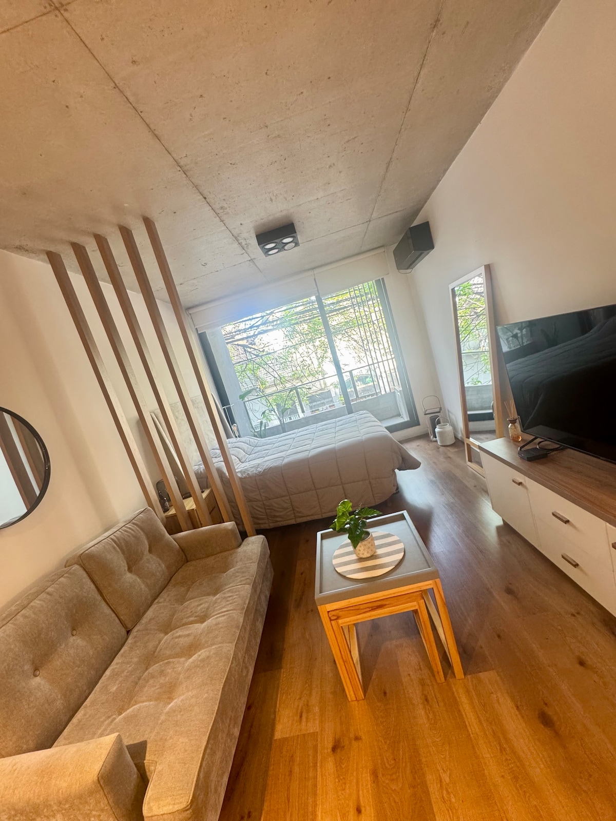 Moderno y luminoso monoambiente en el corazón de la ciudad. Un acogedor espacio decorado con estilo contemporáneo, ideal para viajeros que buscan comodidad y buen gusto. Incluye una cómoda sala con sofá, área de comedor para cuatro personas y un pequeño balcón. Es perfecto para quienes deseen trabajar, descansar o explorar la ciudad. Su ubicación es estratégica, cerca de restaurantes, transporte público y puntos de interés, haciéndolo ideal para estadías tanto de trabajo como de ocio.