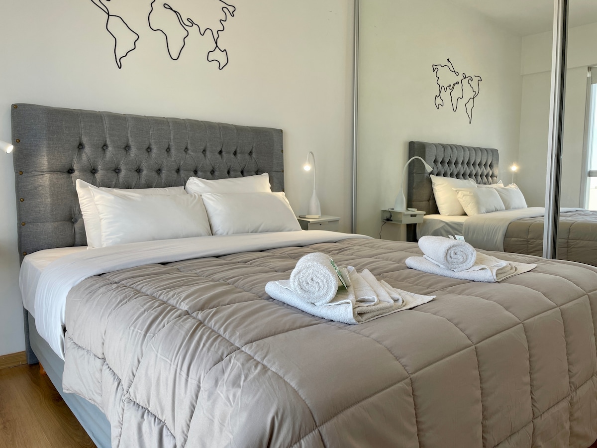 Bright, spacious and cozy apartment, right in the heart of Buenos Aires. Specially designed for your comfort, leisure and peace of mind. Fully furnished and equipped, with a large walk-in closet. Extra queen size bed, wifi, air conditioning for heating and cooling in bedroom and living room, LED TVs with cable, washing machine and fully fitted kitchen. Located on a quiet, brightly lit street in a safe neighborhood. Two blocks from a B Line.