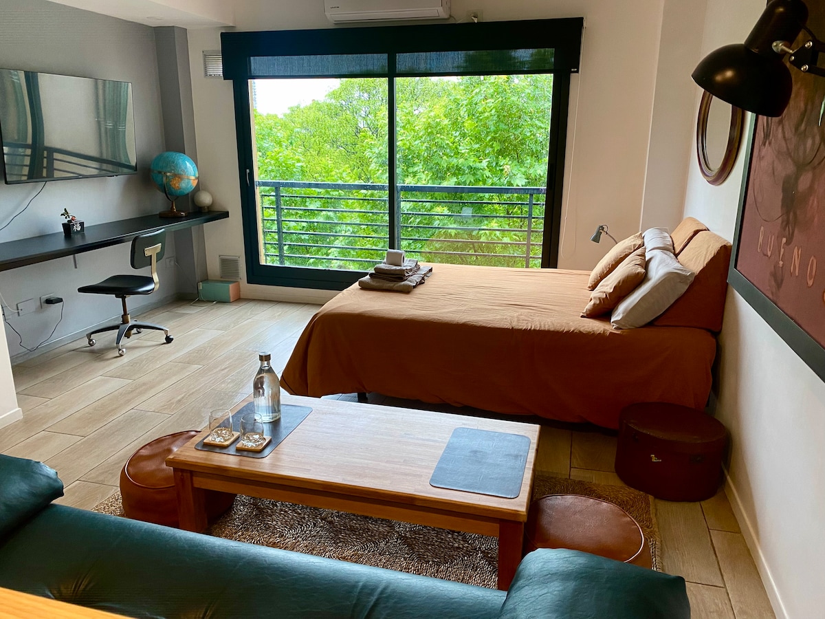 Stylish studio in Palermo's heart. Experience the best of Palermo in our brand stylish studio! Unwind amidst modern furniture and relish the center-of-it-all location. Enjoy the luxury building with pool, sauna, sum, laundry and garden. Explore trendy shops, art galleries and dine at diverse eateries. Ideal for solo adventurers, couples or business travelers seeking a comfortable and memorable stay in Buenos Aires vibrant heart. Book now and indulge in the allure of Palermo!
