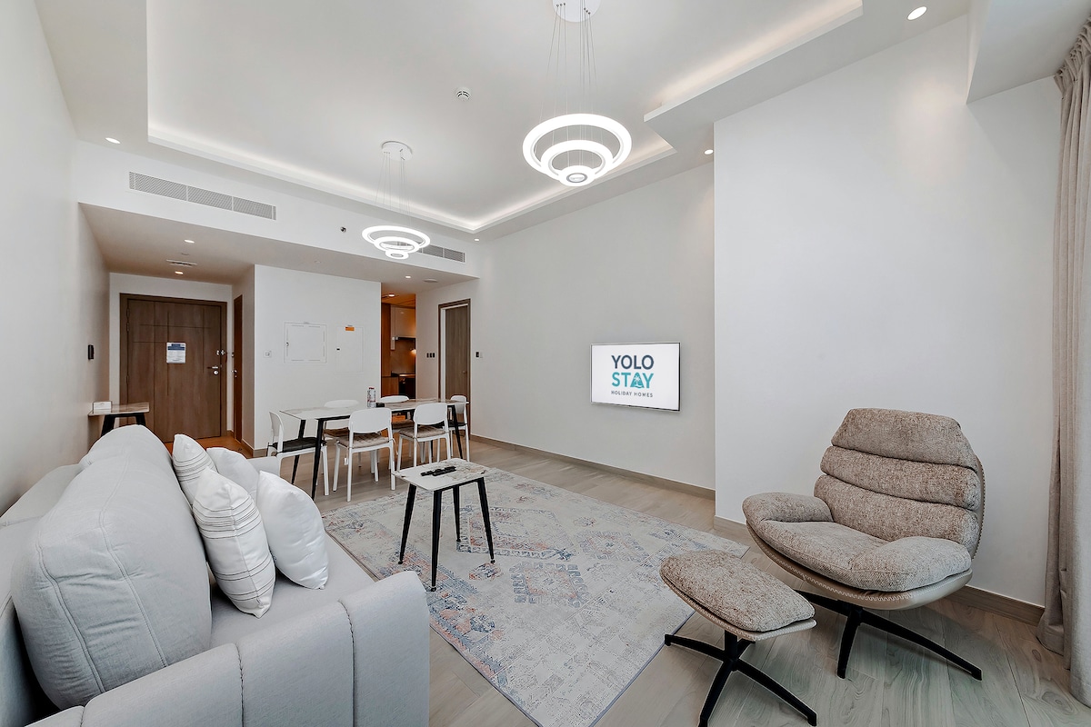 Enjoy a stylish stay in this modern 1BR apartment at Me Do Re, perfectly located in the heart of the city. Relax in a spacious bedroom with a super king bed and wake up to breathtaking panoramic views of DMCC. Fully furnished and designed for comfort—your ideal Dubai retreat starts here. Enjoy 24/7 guest support via Whats@pp and a personalized check-in and check-out experience to make your stay seamless. Perfect for business or leisure, with easy access to metro, dining, and top attractions.