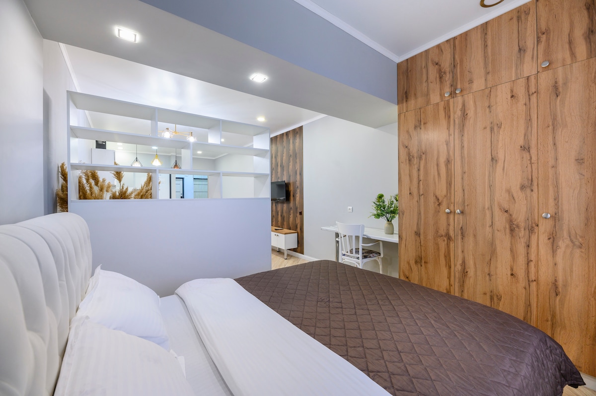 Enjoy a stylish getaway in the city center. My home is a cozy and bright space designed for a relaxing getaway. The interior is meticulously designed: warm tones, neat furniture, cleanliness, and a light, airy atmosphere. It's a pleasant place to wake up, work, relax, and spend evenings. The apartment is ideal for guests who value comfort and order. Situated in the best area of the city, with easy access to any point.