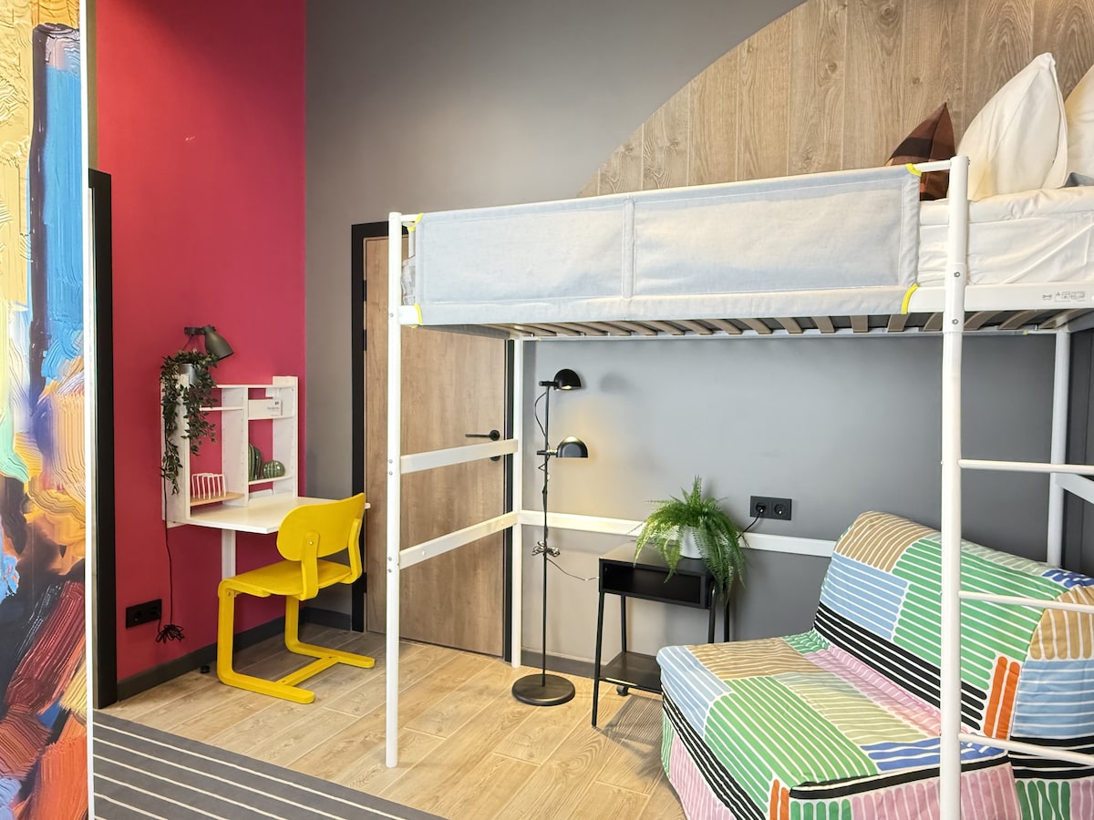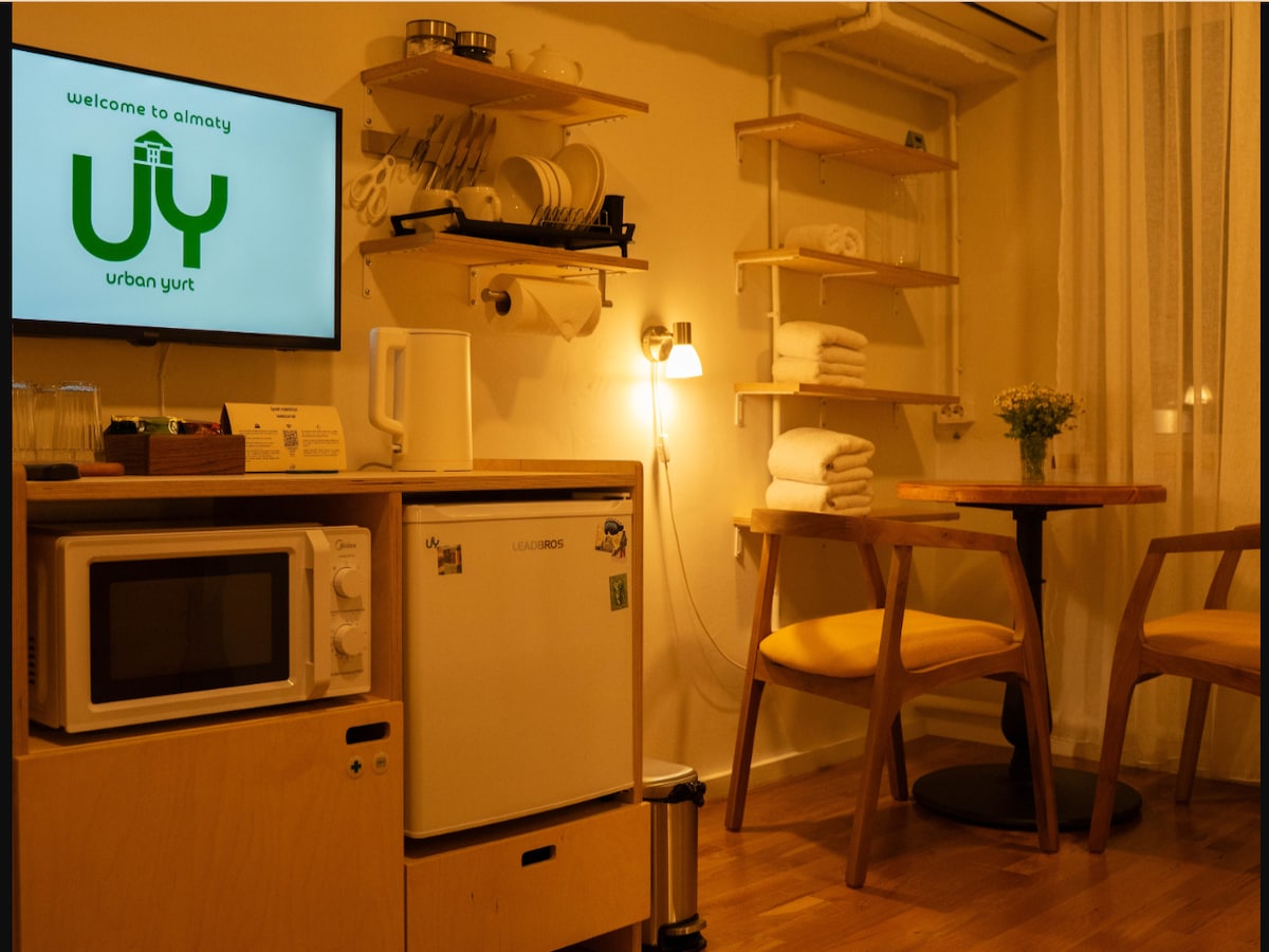 UY - Urban Yurt is a guesthouse in central Almaty, with comfortable rooms and compact private bathrooms. Our guesthouse features five floors and 15 private rooms, all designed to provide you with a cosy and welcoming stay. This 20 m² room is located on the third floor.