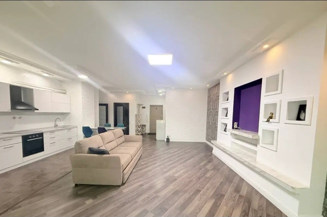 Welcome to your stylish and cozy retreat in the center of Almaty! This modern studio apartment is designed for comfort, whether you're here for business or leisure. The living area includes a modern couch transforming into a comfortable bed with fresh linens for a restful sleep. A dedicated workspace makes it easy to work remotely. The fully equipped kitchen has everything you need to prepare your favorite meals, while the spacious living area provides a cozy space to relax with a Smart TV.