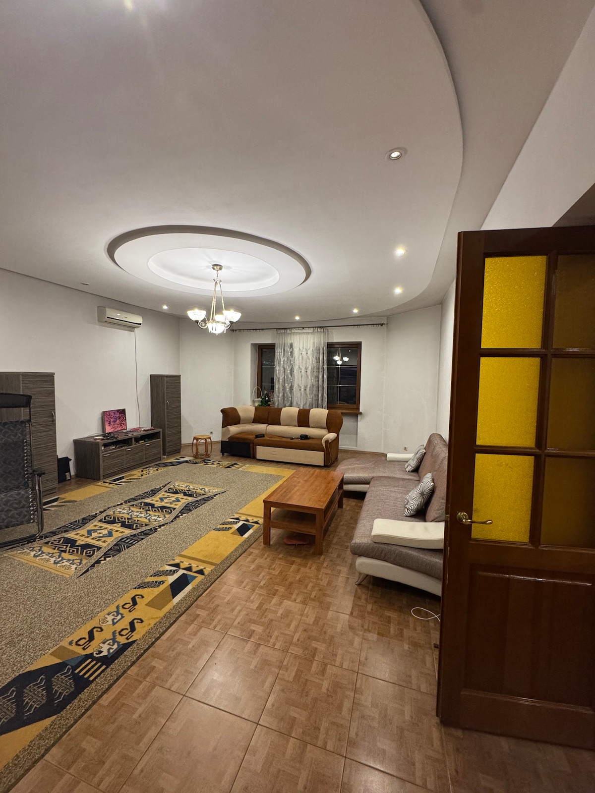 Relax with the whole family at this peaceful place to stay. Big TV, big bed, kitchen is warm and nice to have a cup of tea , lots of coffee and breakfast places around, Globus supermarket located two street right , Central Circus and Central Stadium on left side and Underground metro to get places if you need , Main Street Abay where you can get bus, or taxi …. Apartment is in the middle of the city …