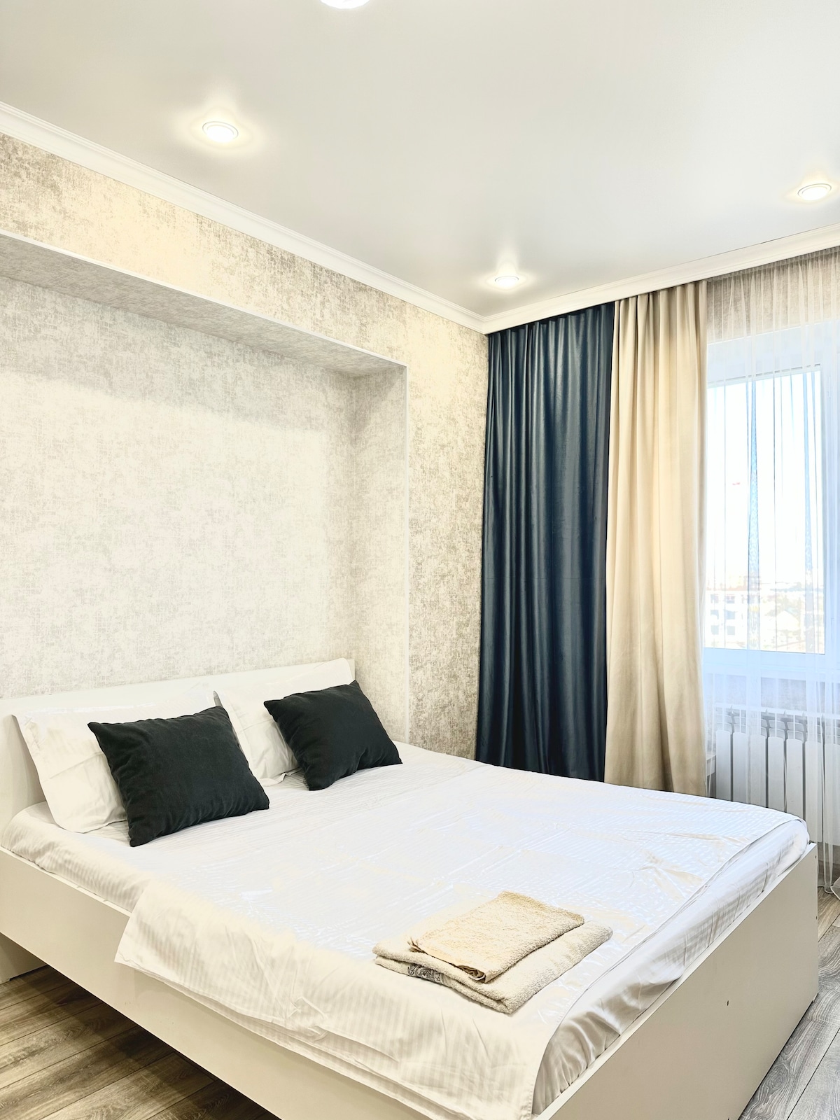 Отличная квартира с современным дизайном. Теплая, светлая и уютная. Подойдёт для проживания как для семьи с детьми, так и для рабочих поездок. Идеальное месторасположение с развитой инфраструктурой. Вдоль Жилого Комплекса протекает река Большая Алматинка. Отличный вид на горы и чистый воздух. В 5 минутах ходьбы от апартаментов находится ТРЦ Mega Center Alma-Ata. Во дворе Жилого комплекса находится большое количество супермаркетов и кафе, несколько детских площадок и многое другое. Всех ждем! )
