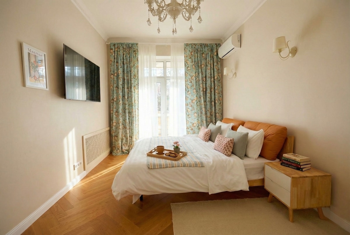 位于阿拉木图中心。可爱的公寓,带安静的庭院