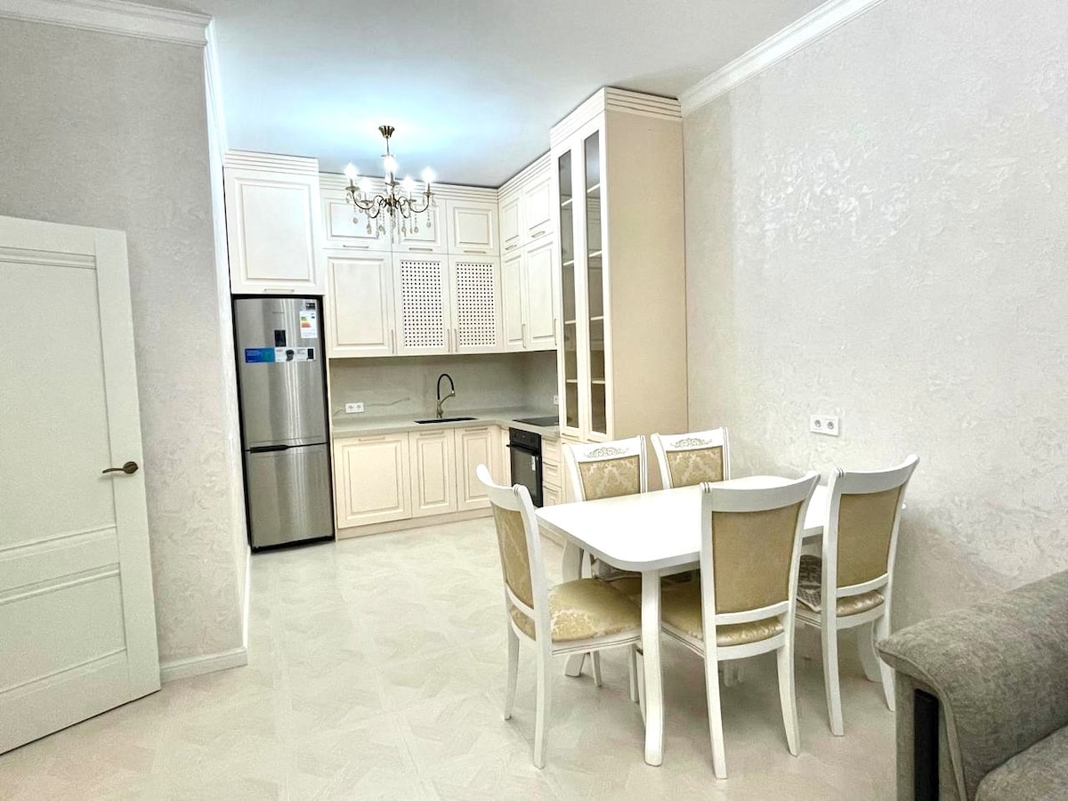 Enjoy a comfortable stay in a bright, spacious apartment with a modern kitchen, fast Wi-Fi, and cozy beds. Perfect for families with children or couples! Just steps away from Arbat, the park, Ascension Cathedral, Green Bazaar, cafes, shops, and the metro. Cleanliness and attention to detail make your stay easy and enjoyable. Feel at home in the heart of Almaty!