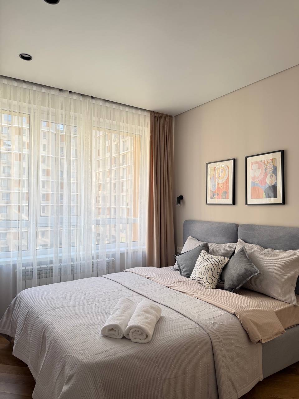 Просыпайтесь с видом на горы Алматы Добро пожаловать в Union Deluxe Apartment — современные апартаменты бизнес класса, где каждая деталь создана для вашего комфорта. Здесь вас ждёт: - две большие кровати, свежий интерьер и кондиционер, - панорамные окна с видом на горы, - уютное место для отдыха после прогулок или встреч. Рядом кафе, магазины и быстрый доступ к центру. Почувствуйте атмосферу Алматы — ваш стильный дом вдали от дома. Насладитесь стильным отдыхом в центре города.