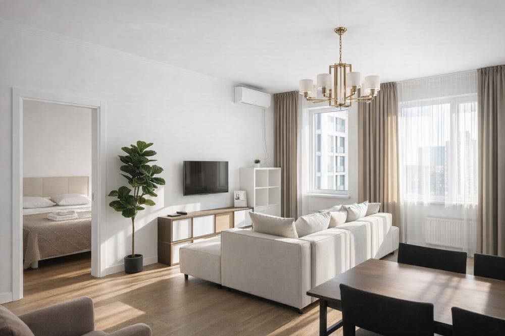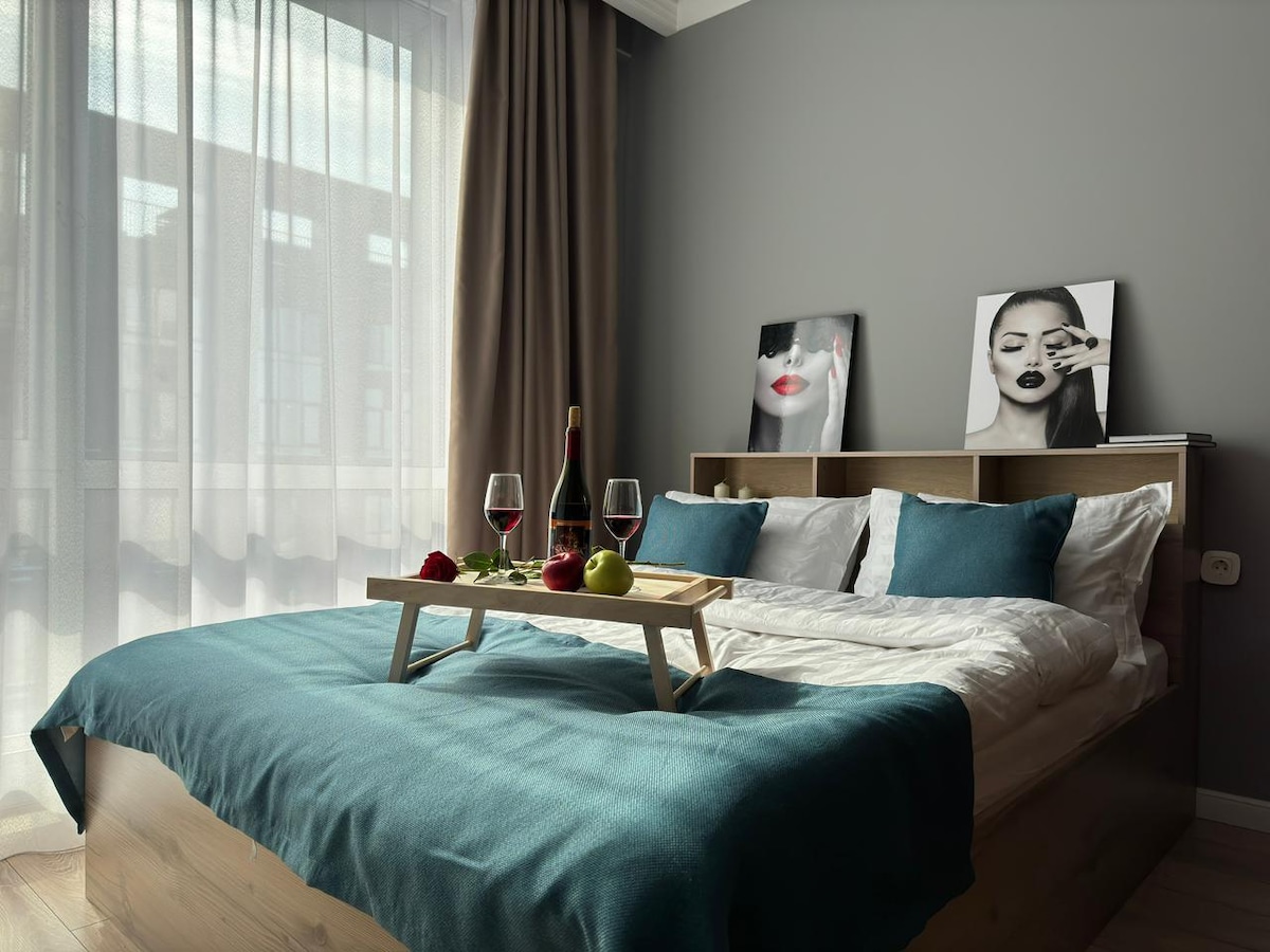 Шикарная квартира с собственным уникальным стилем. Очень просторная. Внутри все продумано до мелочей. Удобное расположение. Рядом есть прекрасная пекарня, кафе со свежей выпечкой, несколько ресторанов, химчистка, студия красоты, продуктовый магазин 24/7, кафе, аптека. Есть стоянка и паркинг. Кухня и спальня изолированы. Тепло, чисто и очень уютно. Для настоящих ценителей порядка. Есть просторный гардероб. Быстрый интернет, smart tv А вид из окна порадует ваш взор величием и красотой.