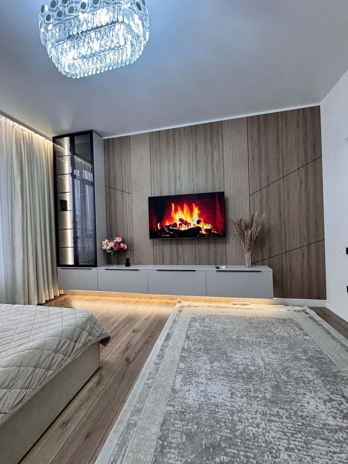 Welcome to a modern and cozy apartment in the new Raymbek residential complex! Stylish design, high ceilings, and bright accents create a comfortable atmosphere. Perfect location: Right across from the metro, with Arbat, Green Bazaar, shopping centers, theaters, a park, and a zoo nearby. Convenient amenities: On-site supermarkets, pharmacies, restaurants, electronics and cosmetics stores, and medical centers – everything you need!