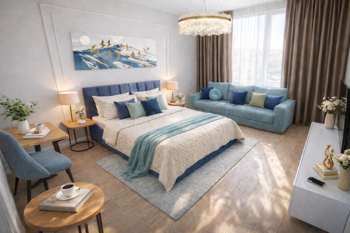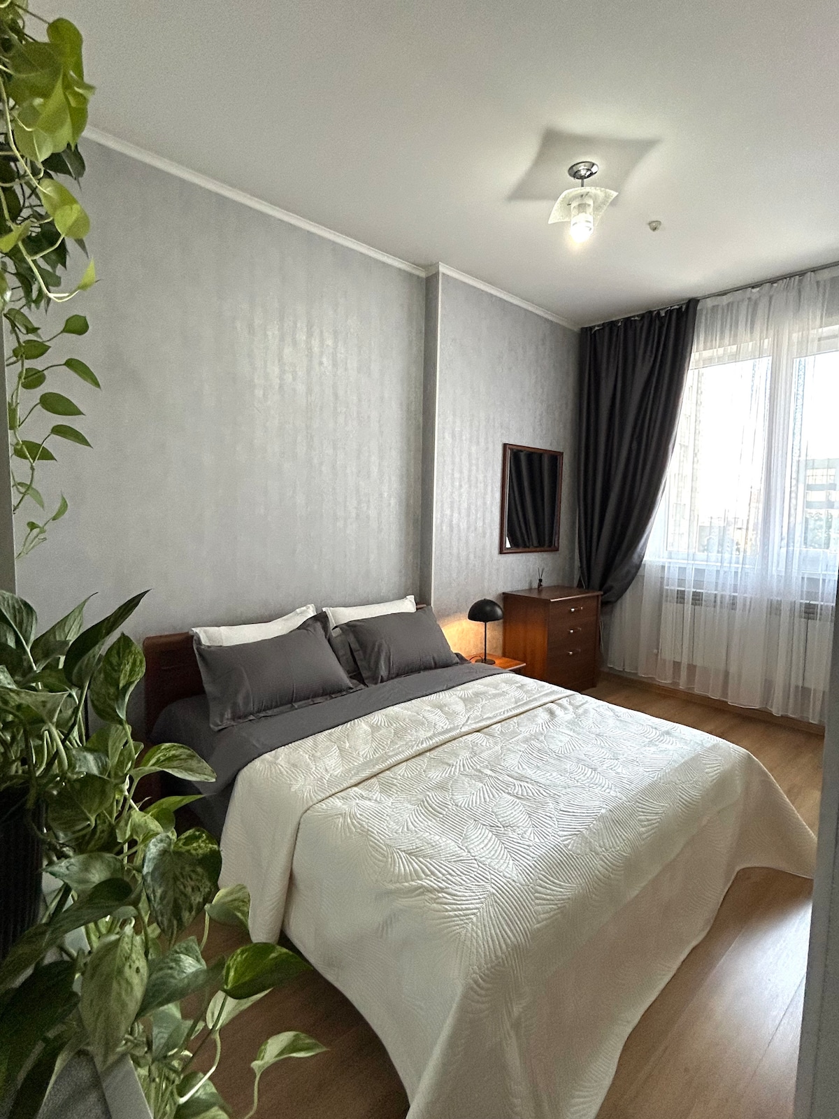 EN Modern apartment in Meridian: Wi-Fi, kitchen, washer, A/C, smart TV, balcony. Self check-in. Across from Mega Park Mall. RU Современные апартаменты в ЖК Meridian: Wi-Fi, кухня, стиралка, кондиционер, смарт-ТВ, балкон. Самозаселение. Напротив ТРЦ MegaPark.