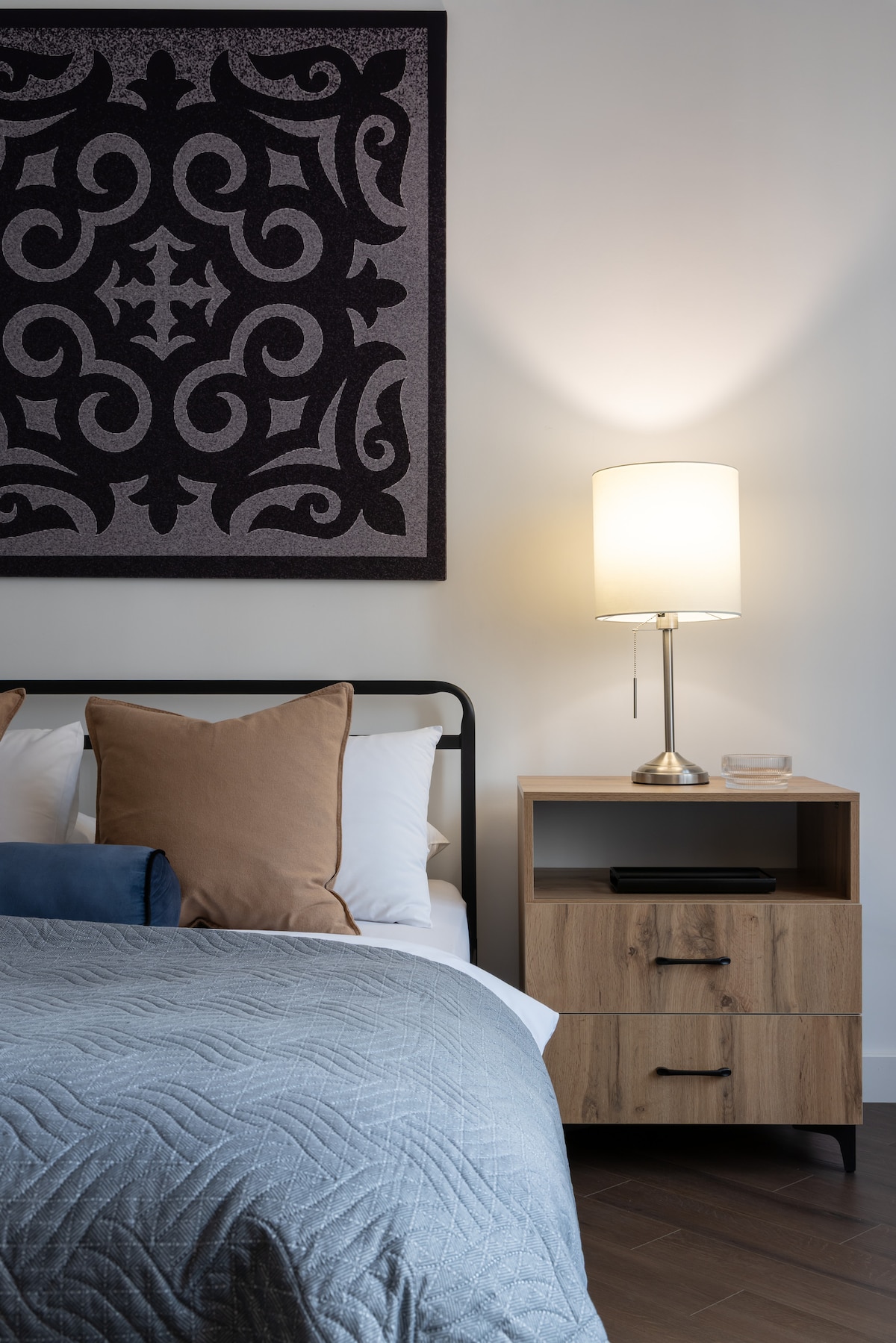Стильная квартира в самом сердце Алматы — на набережной Esentai, рядом с Esentai Mall, парком и лучшими ресторанами города. Уникальная фреска, уютный камин, дизайнерский декор и вид на горы с 4 этажа создают атмосферу уюта и вдохновения. Полностью оборудованная кухня, техника, винные бокалы и редкие сорта чая. Для гостей при бронировании от 5 ночей — бутылка казахстанского вина Arba Wine в подарок. Пространство 48 м² идеально подойдёт для пары, творческой поездки или путешествия в одиночку.