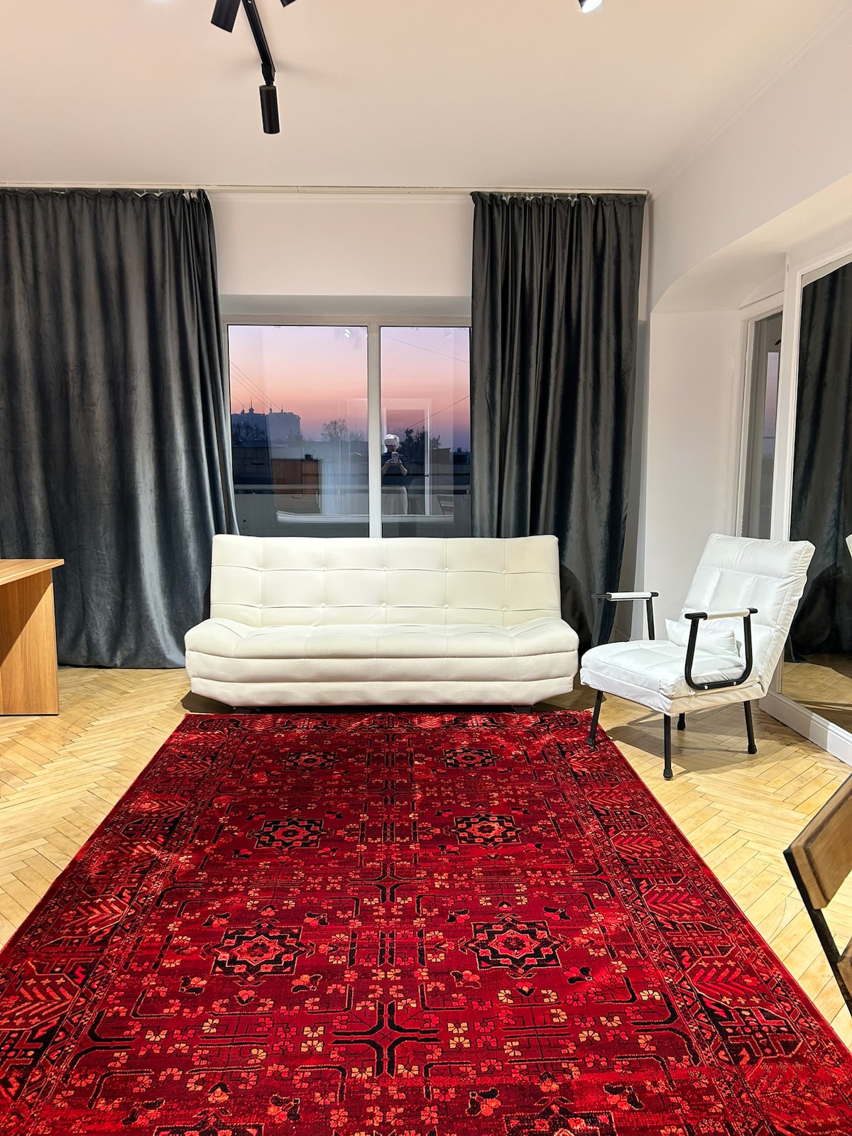 Location, location, location! Enjoy a lovely experience at this centrally-located place. Our apartment is beautifully refurbished. Two separate bedrooms with double beds. Open plan reception room with kitchen. Beautiful stylish bathroom/WC. The flat is aimed at people who need to stay in Almaty for at least a few weeks.