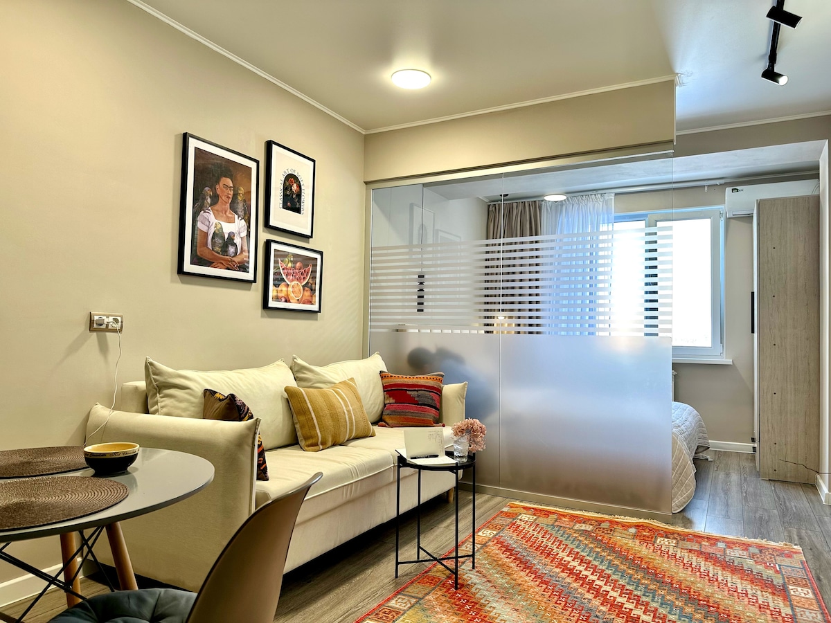 Have a good stay in our beautiful studio Cozy and functional studio in Almaty city for 2-4 people. Infants and children friendly. Newly refurbished entire place has everything you need for your convenient stay. The apartment has fully equipped kitchen, Wi-Fi and all needed amenities. The apartment is located next to the big shopping mall with an array of restaurants, cafes, with supermarket. The main City Walking street is in 10 minutes by walk.