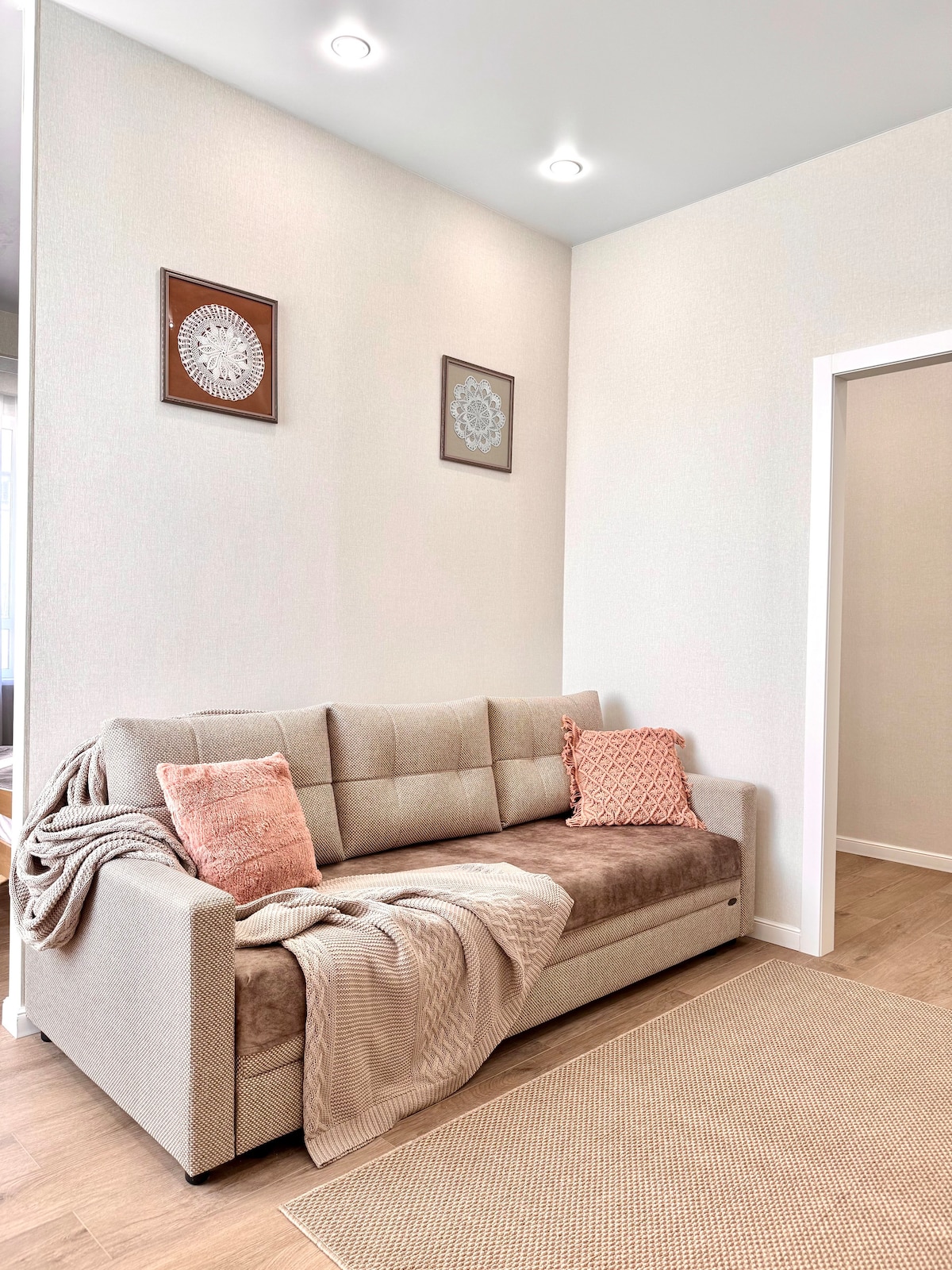 Наш домик NORDIC понравится тем кто любит уют и чистоту! Есть всё необходимое для проживание с детьми на долгий срок. Просторная гостинная с кухней (бытовая техника холодильник, духовой шкаф и т.д.) Телевизор и удобный диван (раскладывается +2 спальных места) с креслами. Спальня с двухспальной кроватью и диваном (+1 спальное место для ребенка) с выходом на террасу. Детская комната с большой доской для рисования мелками, кроватью домиком и диваном. Санузел с душевой и сауной. Двумя террасами