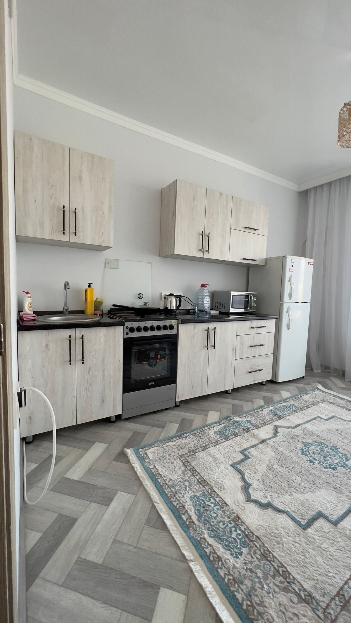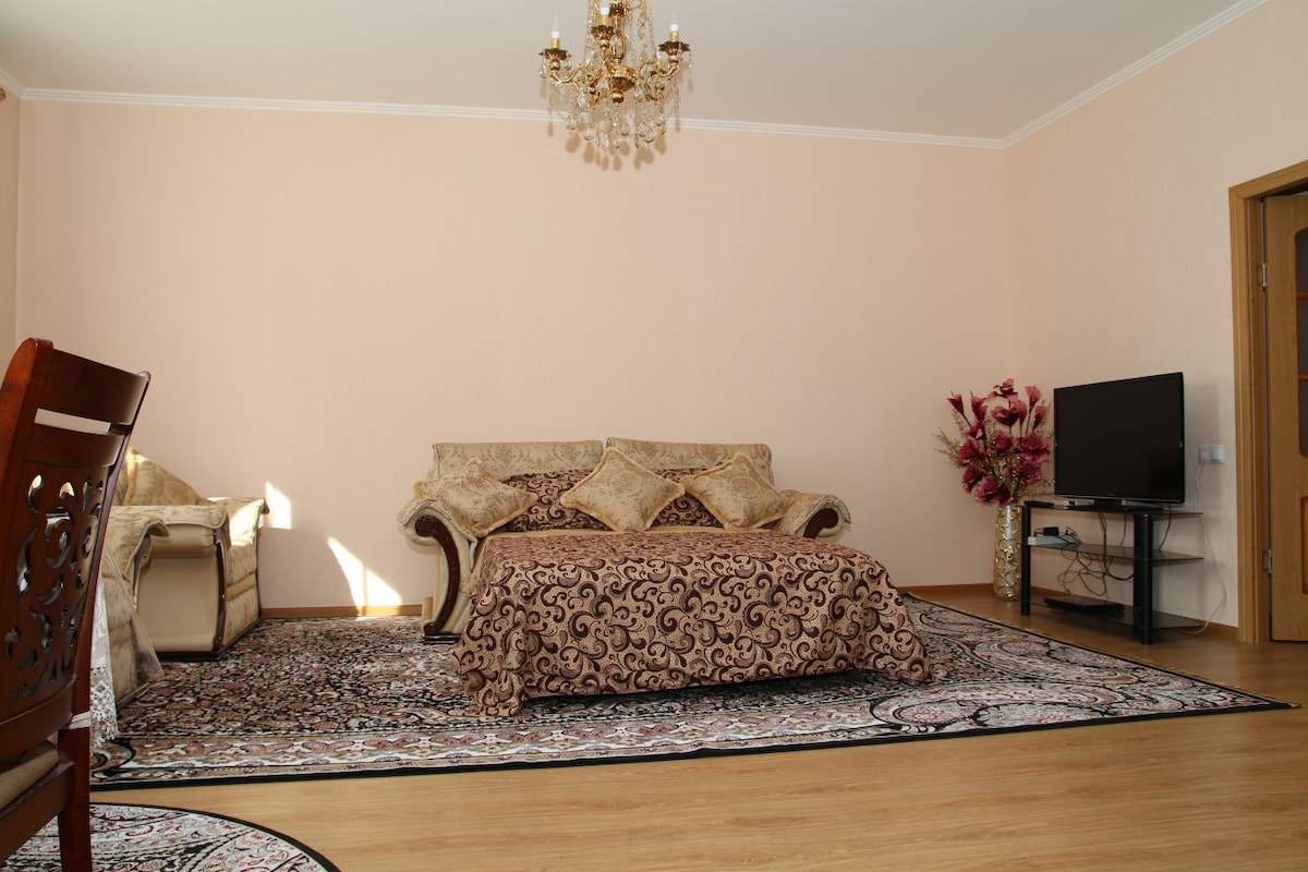 Have fun in our cozy and stylish place. Modern and functional studio in Almaty city for 2-4 people. Infants and children friendly. Newly refurbished entire place has everything you need for your convenient stay. The apartment has fully equipped kitchen, Wi-Fi and all needed amenities. The apartment is located next to the big shopping mall with an array of restaurants, cafes, with supermarket. The main City Walking street is in 10 minutes by walk.