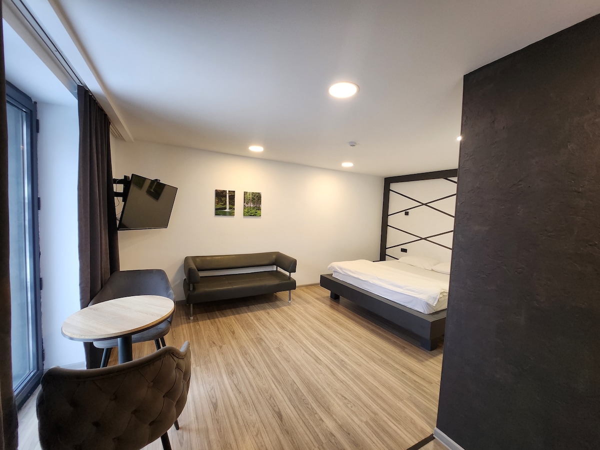 AIRIS RESIDENCE | Премиум-отель в центре Алматы 32 комфортабельных номера для отдыха и деловых поездок. Каждый номер оформлен в современном стиле и оснащён всем необходимым: - Кровать king-size (180×200) с премиальным постельным бельём - Кондиционер - Сейф для хранения ценных вещей - Мини-бар и холодильник - Санузел с душем - Полный комплект полотенец, халаты и косметические принадлежности - Завтрак «шведский стол» включён в стоимость - Круглосуточная стойка регистрации