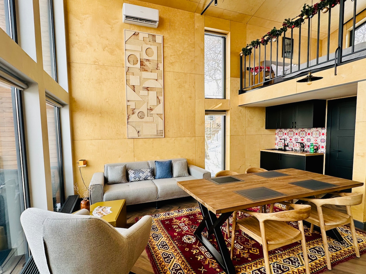 Перезагрузитесь в этом спокойном и стильном месте. Наш домик расположен ближе к озеру и открывает отличный вид на горы и природу вокруг. У нас всегда комфортно, тепло и уютно — идеальное пространство для отдыха вдали от городской суеты.