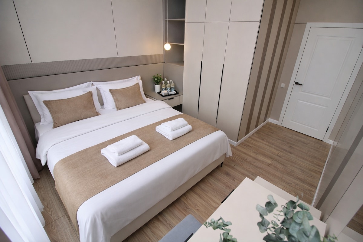 Дофаминовая квартира в центре города! Отличное место для комфортного проживания: • Просторная и светлая гостиная с высокими потолками. • Оборудованная кухня для тех, кто любит готовить. • Уютная спальня с шикарным видом на город. • В нескольких минутах пешком — магазины, кафе и рестораны, парки, пешеходные улицы. Мы создали это пространство, чтобы вы чувствовали себя как дома, а городской ритм был всегда рядом.