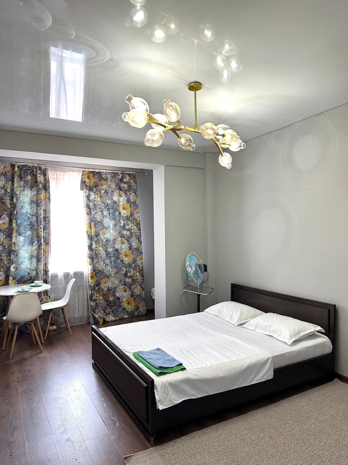 Стильная квартира в самом сердце Алматы — на набережной Esentai, рядом с Esentai Mall, парком и лучшими ресторанами города. Уникальная фреска, уютный камин, дизайнерский декор и вид на горы с 4 этажа создают атмосферу уюта и вдохновения. Полностью оборудованная кухня, техника, винные бокалы и редкие сорта чая. Для гостей при бронировании от 5 ночей — бутылка казахстанского вина Arba Wine в подарок. Пространство 48 м² идеально подойдёт для пары, творческой поездки или путешествия в одиночку.