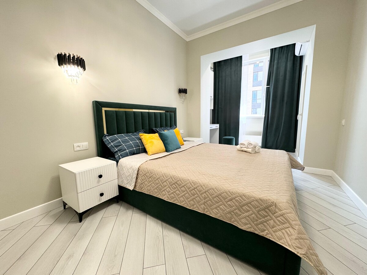 Абсолютно новая полноценная 2х комнатная квартира после стильного ремонта в новом ЖК комфорт класса! Новая мебель под заказ, шикарный ремонт, очень красивый закрытый двор, высокоскоростные лифты, красивая входная группа, видео наблюдение, охрана. Квартира в которой вам захочется жить. Ведь в ней имеется все необходимое для комфортного проживания гостей. Очень уютная кухня, где есть все для приготовления вкусных завтраков, обедов и ужинов. Красивая спальня с большой кроватью и удобным матрасом