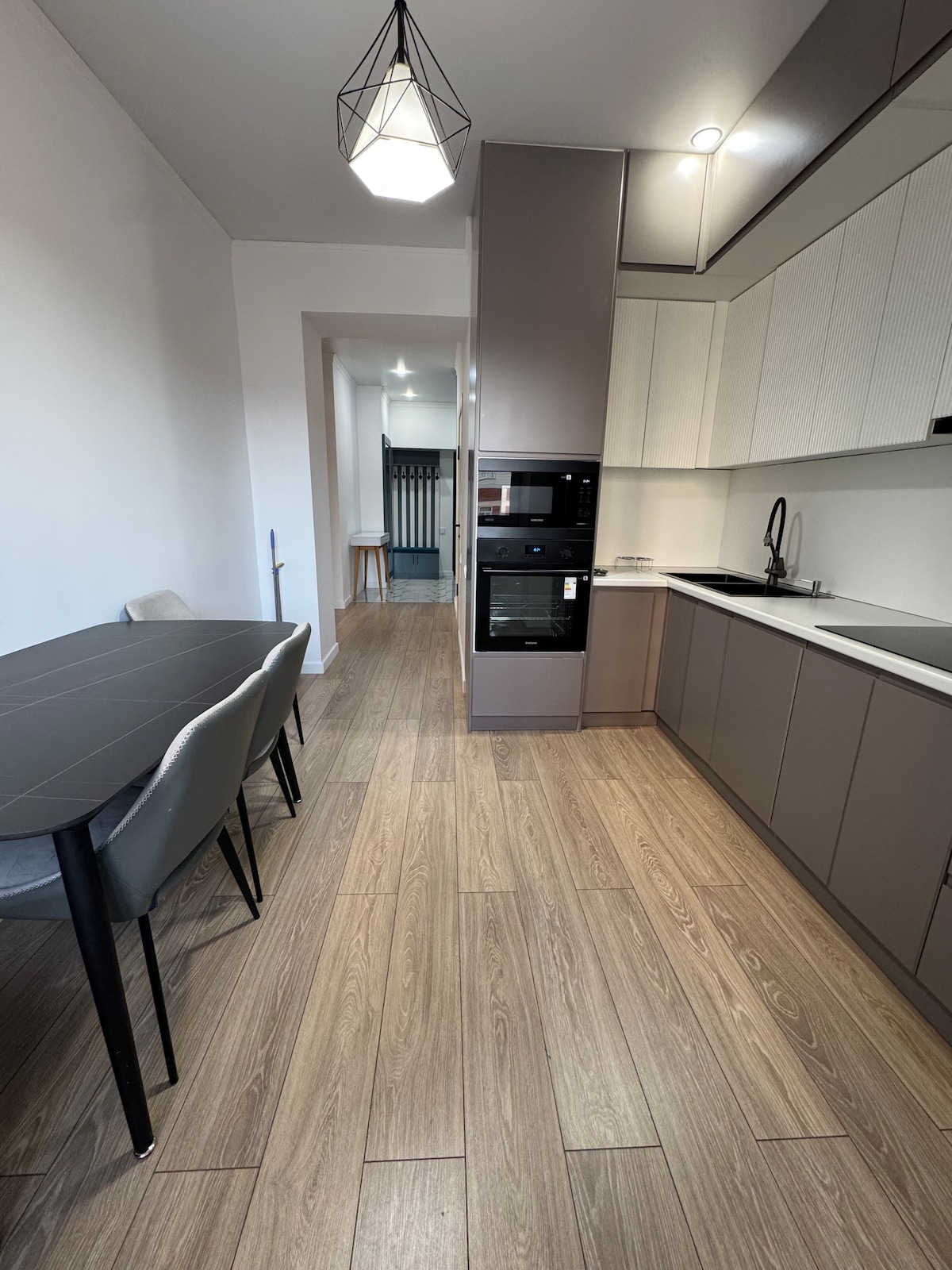 Новый ЖК, расположен в географическом центре города, новая квартира, дизайнерский ремонт, отличный качественный ремонт, квартира на 10 этаже из 12. Можно с детьми, диван раскладывается на двух взрослых. Можно со своими питомцами. Курить нельзя. Очень чисто, вкусно пахнет, зона спальни за раздвижной перегородкой, зона гостиной и кухни очень удобно и красиво, душ и большая раковина есть фен, утюг