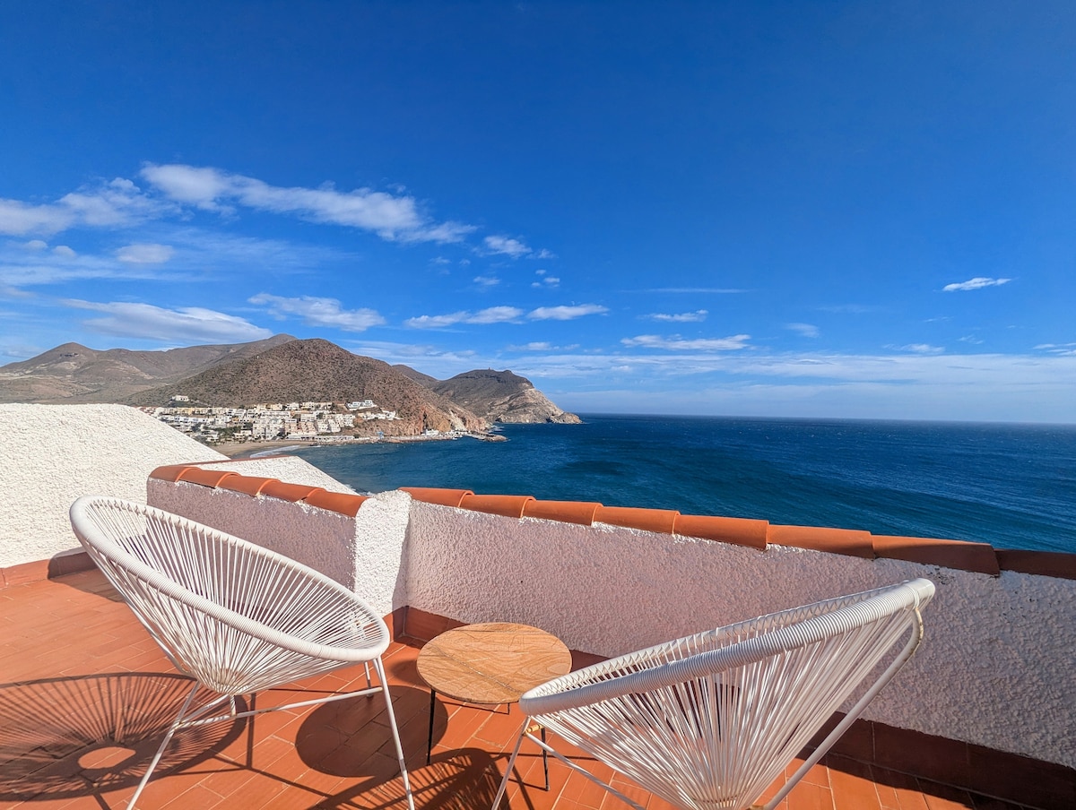 Antigua casa de pescadores a 10 metros de la playa en el corazón del parque natural. Espectaculares vistas desde el porche. Disfruta de las mejores playas de la costa de Almería y de sus fondos marinos. Dispone de 2 habitaciones con 2 camas cada una. Se recomienda para 2 adultos y dos niños.