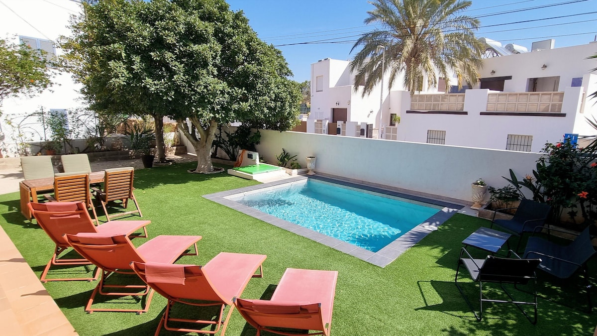 Escape to this charming villa in Almería, an ideal retreat for families, friends, or those working remotely. Whether you're here to explore the surroundings or simply recharge, this villa offers the perfect atmosphere for an unforgettable stay. Private illuminated pool | Barbecue | Chill-out area | Terrace | Fully equipped kitchen | Fireplace | WiFi Just 10 min to Almería Center | 5 min to Palmer Beach | 15 min to Alcampo Mall | 10 min to Aguadulce Port | 30 min to Almería Airport.