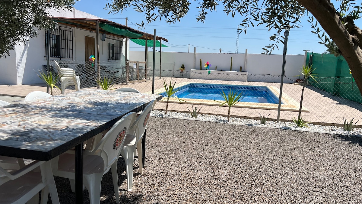 Magnífico CORTIJO con PISCINA Y CUEVA. Enclave único en el Desierto de Tabernas; arquitectura tradicional almeriense para disfrutar de la tranquilidad de la naturaleza, el senderismo, el cine, los atardeceres y paisajes. Ubicado próximo a parques temáticos, circuito de velocidad, rutas del cine y todos los servicios del pueblo: seguridad, sanidad, alimentación. Donde disfrutar de la piscina, la barbacoa y noches románticas con chimenea y una bañera para dos en una preciosa cueva.