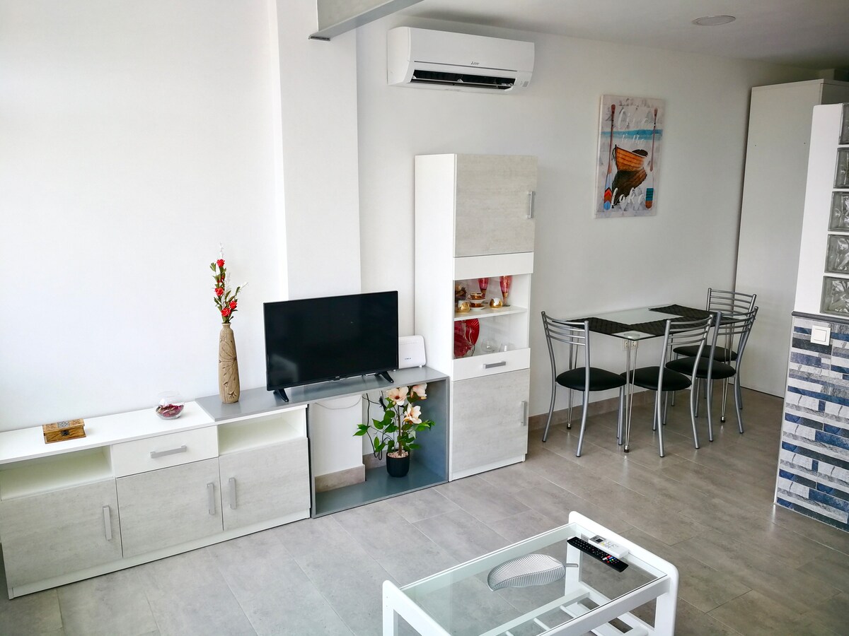 A 1 minuto andando a la playa. 2 dormitorios, 1 baño completo, 1 cocina salon, acristalada, totalmente equipada y cerrada, doble acristalamiento, con puertas correderas y todo lo necesario para cocinar, con 2 sofas y mesa. 3 terrazas: 1 terraza equipada con barbacoa, 1 Terraza semi cubierta equipada para comer, 1 Terraza solárium con 4 tumbonas y rodeadas de plantas naturales. A 30 metros de la playa al lado de restaurantes, chiringuitos, y supermercados etc. Un sitio perfecto para tí.