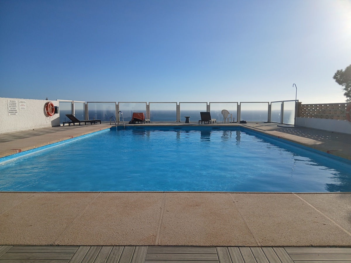 Lo mejor de este apartamento es la vista de 180 grados al mar desde el apartamento. Podrás desayunar mirando al mar y podrás oír las olas mientras duermes. Acogedor y cómodo con todo lo que puedas necesitar para tener unas vacaciones de lujo. Gracias a nuestro Wifi, podrás teletrabajar mirando al mar. Hemos instalado recientemente toldos eléctricos, si sales de casa y se levanta viento, se recogerá automáticamente.