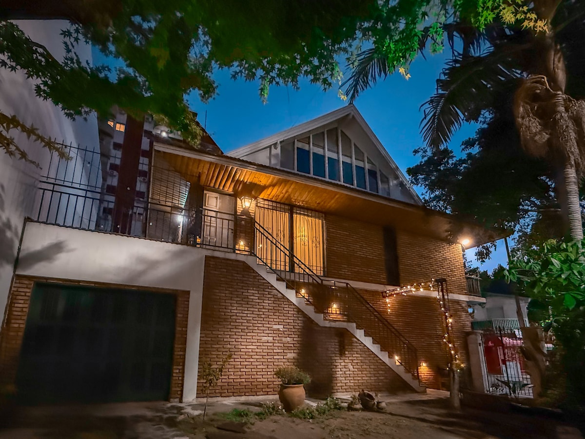 Relajate en este alojamiento único y tranquilo. 70 mts2 construidos con una picina de 7 x 4 hermoso parque y muy buena ubicación. La casa a reservar es la que se encuentra en el fondo, es un quincho rústico. la foto que muestra el frente es donde vivo yo, la entrada es independiente. (piscina habilitada DICIEMBRE- MARZO)