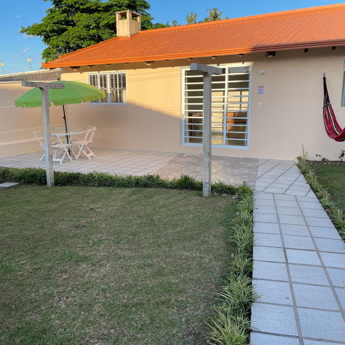 Espaço rústico e aconchegante. Casa térrea em conceito aberto contendo churrasqueira , forno e fogão á lenha. Decorada, carinhosamente, de forma que você se sinta mimado e possa desfrutar de um merecido descanso ouvindo o canto dos pássaros e também apreciando a presença de esquilos que, comumente, vem se alimentar no pé de butiá. Você merece descansar e/ou trabalhar nesse paraíso. A localização: Próximo a Mercados, panificadoras e restaurantes.