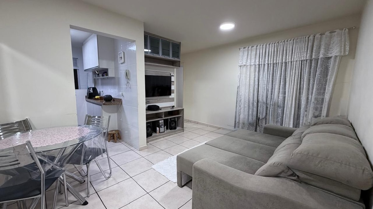 Apartamento térreo em condomínio fechado no bairro Boa Vista em Curitiba, com portaria 24h, estacionamento aberto e parquinho. Apto completo e com Wi-Fi! Ótima localização, próximo da estação tubo de ônibus (acesso ao Centro em 10 min), Polícia Federal, Aeronáutica, Exército, ao lado de vários barzinhos, lanchonetes, padarias, hipermercados, parque Bacacheri, rua da cidadania, UPA, Igrejas e posto de gasolina. Nas sextas temos a feira gastronômica noturna na rua do condomínio!