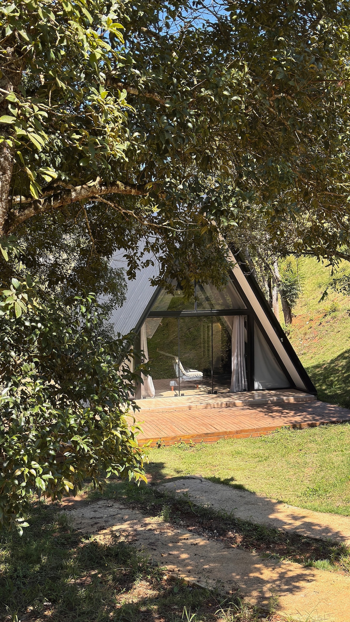 Bem-vindos ao nosso chalé encantador localizado na região metropolitan a de Curitiba. Com um design A-frame e uma vista incrível, oferecemos uma experiência completa com ofurô, cozinha completa, smart tv. Além de uma trilha de acesso para uma cachoeira. Para estadias de duas diárias, presenteamos nossos hóspedes com uma cesta de café da manhã. Permita-se relaxar e se conectar à natureza neste espaço único! O chalé pode ficar um pouco quente se ficar com as portas fechadas deixe o ar fluir 🍃🍃