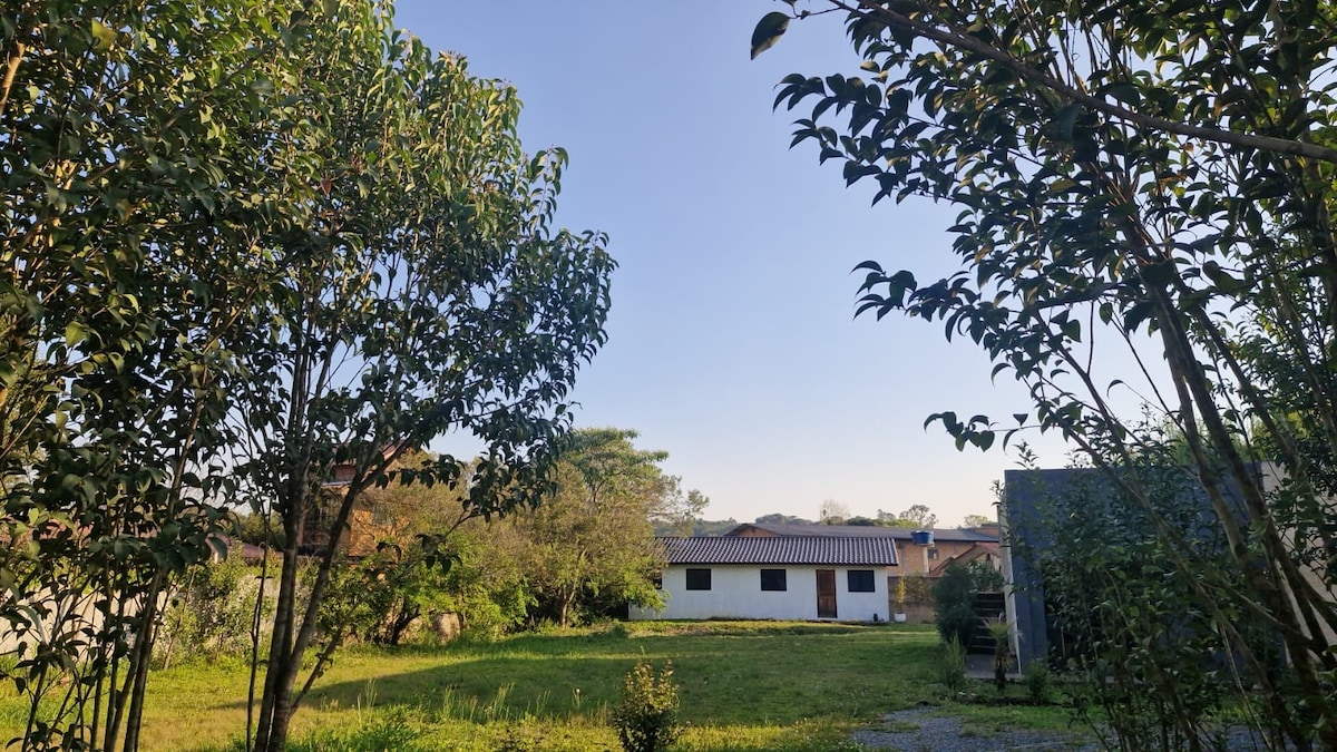 A Casa está inserida em uma grande área cercada em meio à natureza .Oferecemos trilhas para curtas caminhadas, que desembocam em um lago e local com mata preservada e, o canto de diversas espécies. Ao final de uma tarde ensolarada é possível subir no ponto mais alto e receber da natureza um magnífico PÔR DO SOL.Estamos em uma zona rural, mas à 7km do bairro italiano de Santa Felicidade,onde encontram-se vinícolas,restaurantes e diversos comércios. Temos piscina,campo de futebol e estacionamento.