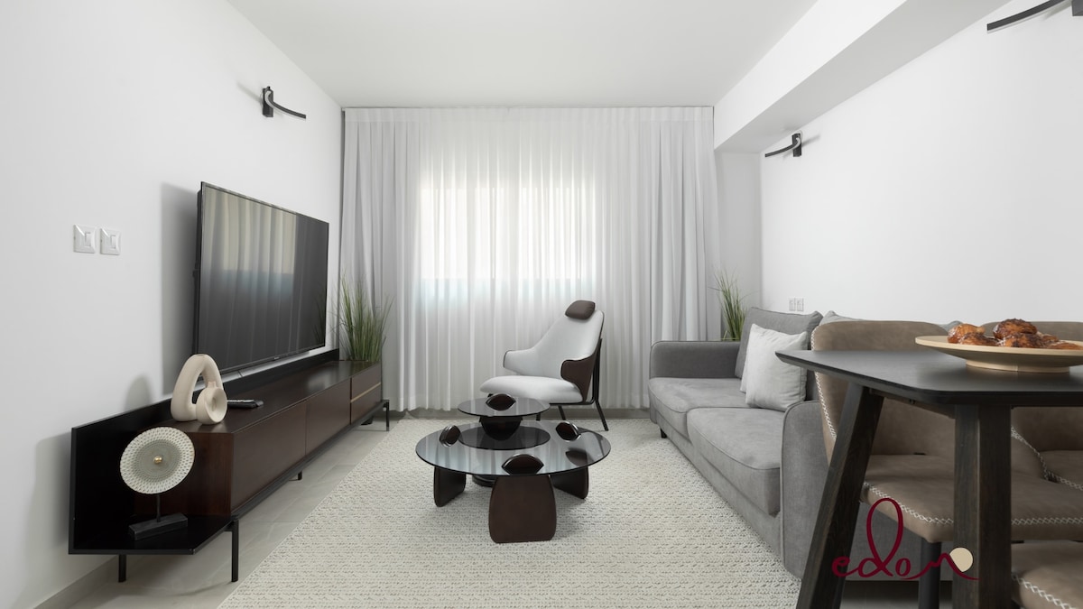 דירה מדהימה בגודל 2.5 חדרים (חדר שינה עם נישה מחוץ לחדר שינה וסלון) . הדירה ממוקמת במתחם חדש בשם סי סייד הממוקם רק 100 מטרים מהחוף, מהקניון ומהטיילת ומציע גישה נוחה לים היפה. זו היא בחירה מושלמת לחופשת חוף מרגיעה ומהנה כמשפחה.