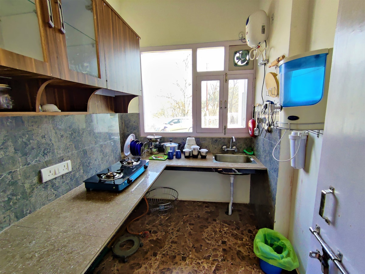 Our 2 bedroom Homestay nestled in Kumaoun Region of Uttrakahand located at Majkhali, Ranikhet ,Almora. Amidst Dense pine forest surrounded by range of Himalayas (Nanda Devi, Trishul parvat, Panchachulis) away from city hustle bustle life From heaters to speakers, this homestay has all the amenities you could ask for and more. Our challet has 2 private rooms for accommodation. Each room has a king-size double bed along with almira. The common space can also have sofa cum bed for accommodation