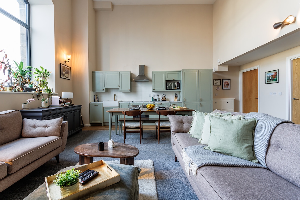 This early nineteenth century property was once a Victorian School House but has been a dwelling for over a hundred years. In 2015 the property was renovated and no expense has been spared on this tastefully furnished apartment. There is a beautiful log-burner in the living room fireplace - with fuel provided - so the apartment is truly a cosy space even with its modern, light and airy open-plan aesthetic.